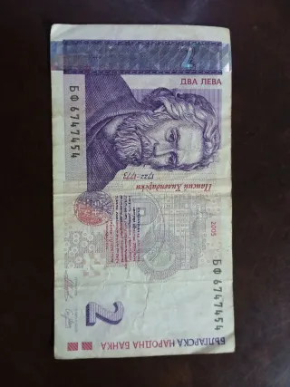 Billete de dos Leva de Bulgaria, emitido en 2005. Presenta el retrato de Paisiy Hilendarski. - Denominación: 2 Leva - Año de emisión: 2005 - Anverso: Paisiy Hilendarski (1722-1773) - Reverso: Monasterio de Rila