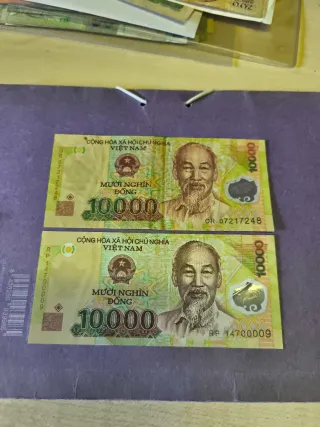 Dos billetes de 10000 Dong de Vietnam. Estos billetes son de la serie de 2007 y 2014. - Billetes de 10000 Dong. - Serie 2007. - Serie 2014. Sin circular.