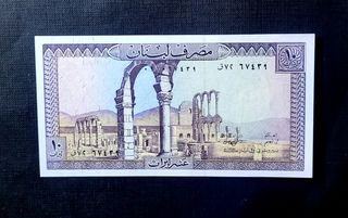 Billete de 10 Libras del Banco de Líbano. Presenta un diseño con ruinas antiguas y el texto مصرف لبنان (Banco del Líbano). - Denominación: 10 Libras. - País: Líbano. - Diseño: Ruinas arquitectónicas. Asia, Africa, America, Europa, Oceania Mas monedas y billetes en mi perfil Hago envios de diferentes tipos