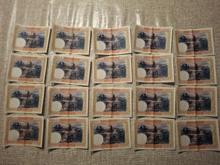 Hoja de billetes del centenario de transportes. - Serie Centenario. - Billetes Ordinario. - Número de serie 25161.