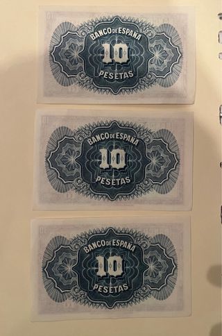 Billetes consecutivos 10 Pesetas 1935 (3 seguidos)