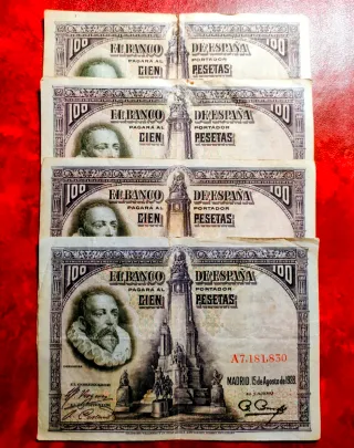 Son 20 billetes de 100 pesetas de 1925, con la figura de Felipe II. Ha circulado por lo que tienen diferentes estados de conservación. . Envío o entrego en mano en Barcelona, zona Plaça de Sants