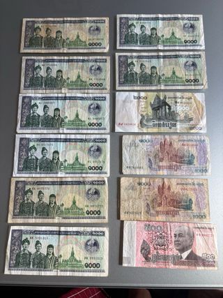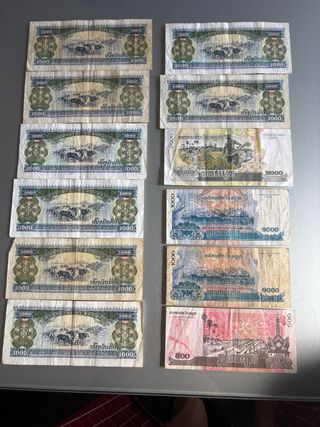 Conjunto de billetes de Camboya, de venden todos juntos, los de las fotos. Son usados, pero en buen estado