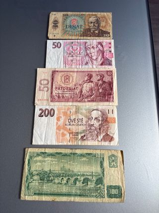 Conjunto de billetes de diferentes valores de Checoslovaquia. Se venden todos juntos.