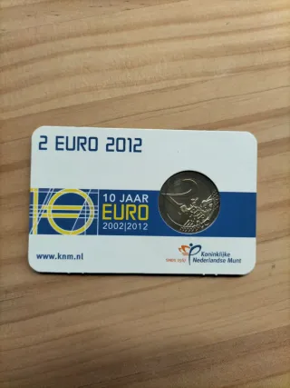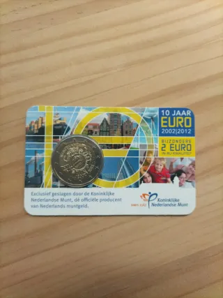 Moneda conmemorativa de 2 euros de Holanda del año 2012. Coincard Países Bajos - Conmemora los 10 años del Euro. - Calidad BU (Brilliant Uncirculated). - Emitida por la Koninklijke Nederlandse Munt.
