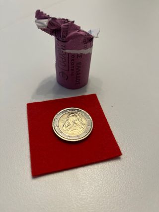 Moneda de 2 euros conmemorativa de Grecia del año 2019. Presenta un diseño distintivo en su anverso. - Moneda de 2 Euros. - Año: 2019. - País: Grecia. solo la moneda sin el fieltro rojo #moneda #monedas #numastica