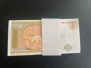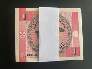 Lote de 100 billetes de Kirguistán de 1 Tyin, año 1993. - Billetes de colección. - Diseño con motivos culturales.