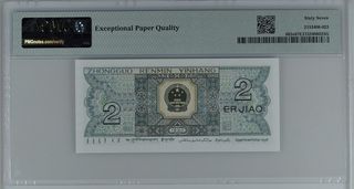 Billete China 2 Jiao 1980 PMG 67 EPQ