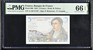 Billete Francia 5 Francs 1947 PMG 66 EPQ