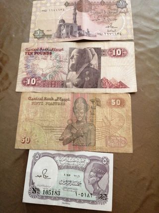 Billetes de egipto one pounds,ten ponds, 50 piastres y 5 piastres. Bastantes bien conservados