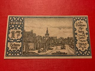 Este billete de Notgeld de Alemania data de 1921 y presenta un diseño detallado de una escena rural. - Ilustración de un pueblo con iglesia. - Inscripción Bezirk Lichtenberg.