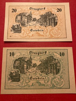 Austria 1920 Notgeld 20 y 10 Heller Strengberg
