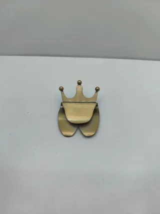 Elegante pinza para billetes con diseño de corona. - Acabado en tono dorado. - Diseño de corona con tres esferas. - Solo se realizan envíos.