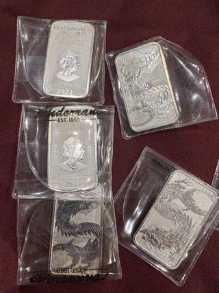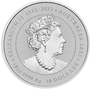 Moneda de plata de 1 onza con diseño de dragón. - Año: 2023 - Metal: Plata 9999 - Peso: 1 oz - Forma: Rectangular - Reverso: Diseño de dragón - Anverso: Retrato de la Reina Isabel II y 1 Dollar Australia - Emisor: The Perth Mint Australia Precio por unidad