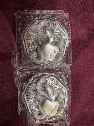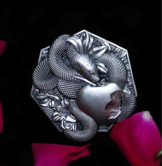 Moneda de plata de 2 onzas con diseño de Pecado Original. - Acabado antiguo y alto relieve. - Diseño apilable. - Año 2023. Precio por unidad
