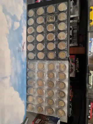 Álbum para coleccionar monedas de 2 euros. La gran mayoria diferentes y varias repetidas algunas estan totalmente nuevas otras son de circulacion - Contiene múltiples páginas con compartimentos. - Ideal para organizar y proteger tu colección de monedas. El precio no es de 1 euro, es a convenir, hay piezas chulas