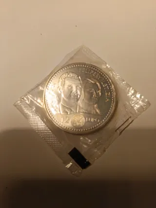 Moneda conmemorativa de plata de ley 925. - Diseño de los Reyes Felipe y Letizia. - Año 2004. - Valor facial de 12 euros.
