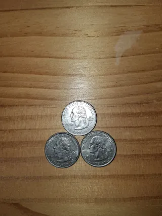 Lote de 3 monedas quarter dollar de Estados Unidos, año 1999. Perfectas para coleccionistas, decoración vintage o regalo simbólico. Estado impecable. Se entregan con protección.