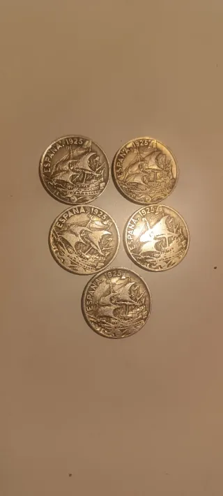 5 Monedas España 1925 Barco