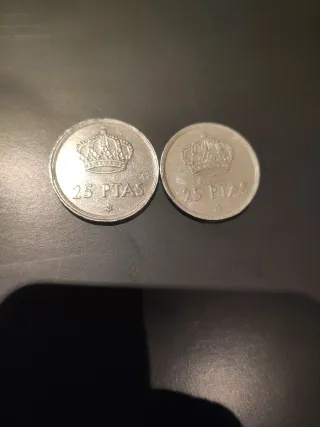 Monedas de 25 pesetas de 1975 estrellas 78y76