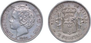 Reino de España 1894 *18-94 PGV 2 Pesetas - Alfonso XIII (2º retrato) Plata (.835) Ceca de Madrid (279000) 10g AU KM 704