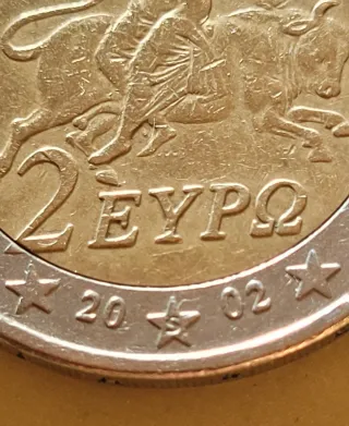 Moneda de 2 euros de Grecia del año 2002. El diseño muestra a Europa sobre un toro. - Ceca: S - Año: 2002 - Denominación: 2 Euro - País: Grecia