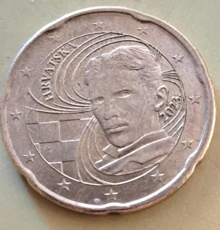 Moneda de 20 céntimos de Croacia del año 2023. Presenta la imagen de Nikola Tesla - Año: 2023 - País: Croacia - Valor: 20 céntimos