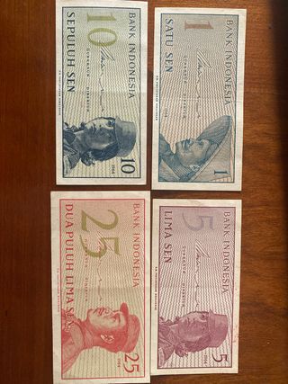 Billetes Indonesia 1964: 1, 5, 10, 25 Sen
