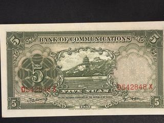 Billete 5 Yuan Banco de Comunicaciones 1935