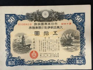 Bono de Guerra Japonés 50 Yenes 1941. Billete