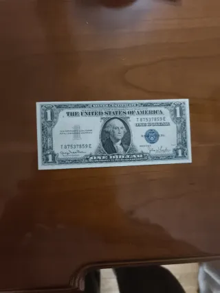 Sello azul, dolar ateo. No figura "in god we trust", sin circular, nuevo, todo su apresto. - Diseño clásico con retrato de George Washington. - Serie T. - Número de serie: T87537859E.