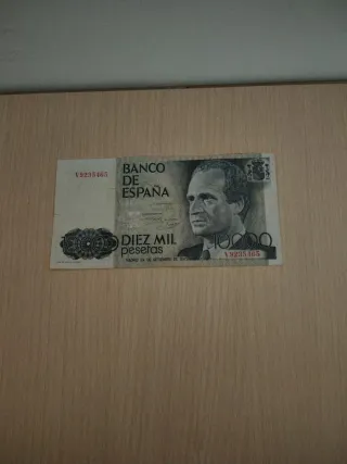 Billete de 10.000 pesetas de España, emitido en 1985. - Serie V9235465. - Con retrato de Juan Carlos I. - Fecha de emisión: 24 de septiembre de 1985.