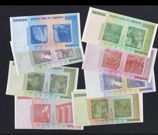 Conjunto único de 9 billetes de Zimbabue de la hiperinflación de 2008. Es una colección difícil de conseguir en su totalidad, especialmente todos los billetes de alto valor, algo que lo hace realmente valioso. Incluye billetes de 1, 5, 10, 20, 50 millones, así como billetes de 10, 20, 50 y 100 billones. Todos los billetes son auténticos y probados bajo luz UV. Un conjunto legendario que representa la crisis económica de Zimbabue. NUFILART billetes Zimbabue, billetes de Zimbabue, hiperinflación, dinero de Zimbabue, moneda de Zimbabue, billetes raros, colección de billetes, billetes antiguos, billetes hiperinflacionarios, billetes 20