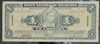 Billete de 1 Córdoba de Nicaragua Serial 12126503. Estado BC Billete República Dominicana 1 Peso Duarte BC