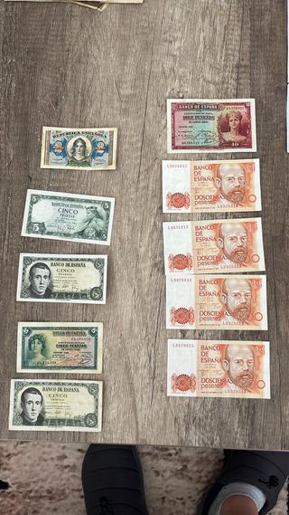 ESCUCHO OFERTAS LOGICAS PARA LOS BILLETES QUE SON Y EL ESTADO EN EL QUE SE ENCUENTRAN Están en muy buen estado - Incluye billetes de 25, 50 y 100 pesetas. - Billetes de diferentes épocas y diseños. - Un billete de 1000 Reichsbanknote 1941