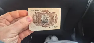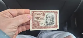 Billete antiguo de 1 peseta del Banco de España, emitido en 1953. - Denominación: 1 Peseta. - Fecha de emisión: 22 de Julio de 1953. - Banco emisor: Banco de España. - Diseño con retrato de personaje histórico.