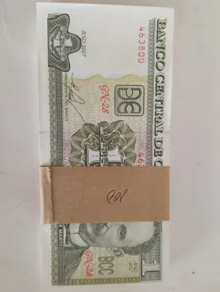 Fajo de billetes de 1 peso cubano, año 2017. - Serie GN-28. - Banco Central de Cuba.