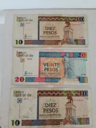 Lote 3 Billetes CUC Cuba 10 y 20 Pesos
