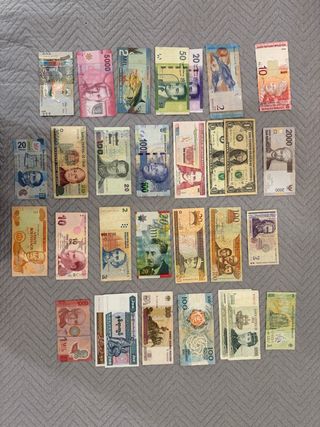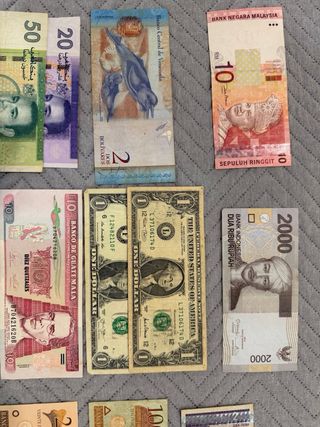 Colección variada de billetes de diferentes países. Una oportunidad para coleccionistas. Incluye una funda para guardarlos de manera segura - Incluye billetes de Bolivia, Costa Rica, Guatemala, Malasia, Turquía, Chile, Rusia, Myanmar y otros. - Diversos valores y diseños. Escucho ofertas!!!