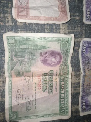 Billete de 100 pesetas del Banco de España, emitido en 1928. Billete de 100 pesetas del Banco de España, emitido en 1925. Billete de 100 pesetas del Banco de España, emitido en 1931. Billete de 50 pesetas del Banco de España, emitido en 1935. Billete de 5 pesetas del Banco de España, emitido en 1935. Billete de 1 pesetas del Banco de España, emitido en 1951. PRECIO NEGOCIABLE PREGUNTAR POR INDIVIDUAL