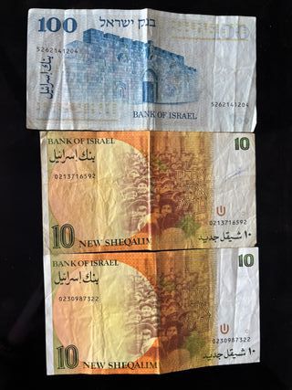 LOTE 3 BILLETES ISRAEL VINTAGE LIRAS Y SHEQALIM