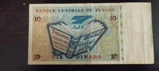 Billete de 10 dinares tunecinos con la imagen de Ibn Khaldoun. - Banco Central de Túnez. - Fecha de emisión: 1994-11-7. - Número de serie: 5824241.