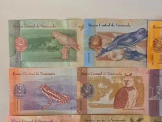 Lote de billetes de diferentes países con motivos de animales. Los billetes son sin circular, en el estado en que se ve en las imágenes. Pueden cambiar las series de los billetes. Nufilart billetes - animales. Pájaros, billetes, colección, lote, tortugas, insectos, Focas, tiburones, ballenas, tigres. Leones, linces, águilas, urracas, América, Asia, Europa, mundo animal, fauna, exótico Billetes de Venezuela.nu - Billetes de Argentina. - Billetes de Nepal.