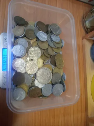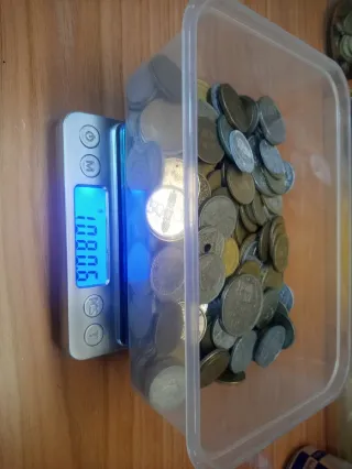 Conjunto de monedas antiguas de España. El peso total es de 108.6 gramos. - Monedas de diferentes épocas. - Ideal para coleccionistas.