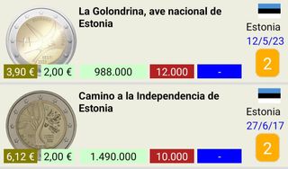 Monedas 2€ de Estonia, diferentes modelos y años. NO realizo CAMBIOS ((sólo venta)). Disponibilidad de monedas circuladas y sin circular. PRECIO según modelo, país y año. Se agrupan pedidos con el resto de anuncios que tengo en wallapop. Consulta precio y disponibilidad sin compromiso alguno.