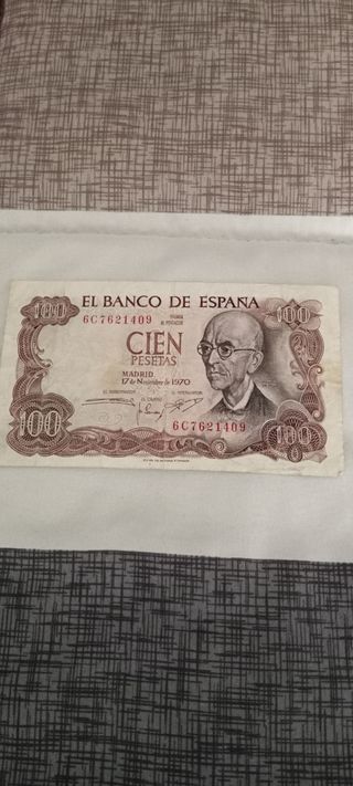Billete de 100 pesetas de 1970 como recién sacado del banco con sonido de papel fino esta sin doblar osea sin estrenar recoger en mano