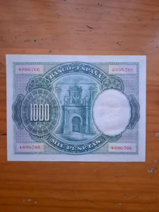 Billete de 1000 pesetas del Banco de España, emitido en Madrid el 9 de enero de 1940. Presenta un retrato de Bartolomé Murillo. MBC - Denominación: 1000 pesetas. - Fecha de emisión: 9 de enero de 1940. - Lugar de emisión: Madrid. - Retrato: Bartolomé Murillo.