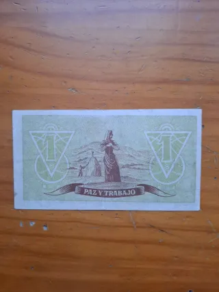Billete de 1 peseta de la República Española, emisión de 1937. SC - Ministerio de Hacienda. - Certificado provisional de moneda divisionaria. - Diseño con figura femenina y escudo. - Serie A7763380.