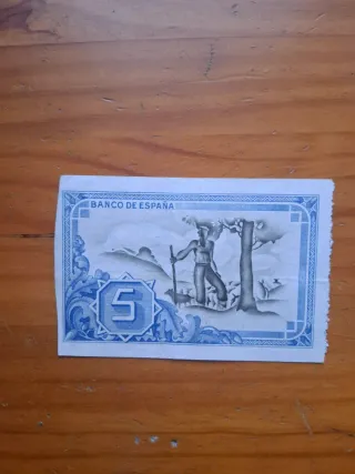Billete de 5 pesetas del Banco de España, emitido en Santander en noviembre de 1936. BC - Denominación: Cinco pesetas. - Fecha de emisión: Noviembre de 1936. - Lugar de emisión: Santander. - Serie: 122444.