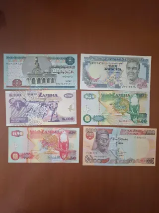 Africa: 6 billetes de Egipto, Zambia y Nigeria